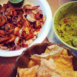 Whisk together all of your ingredients in a large bowl then add in the shrimp. Make sure all of the shrimp is coated in the marinated and let it sit for about 20-30 minutes. I used a grill pan on my stove; the shrimp quick fast, so keep an eye on them. You’ll known when the shrimp is done when they begin to curl up (probably no more than 3 minutes total). Serve with fresh lime slices on the side, brown rice, homemade guacamole and gluten free corn chips!