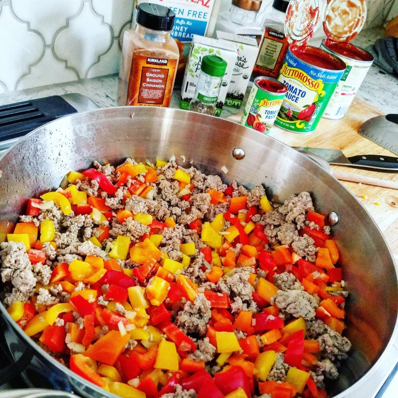 Chop onion, carrots, peppers and garlic. If you’re meal prepping, you can store these in a Pyrex container for 1-2 days.