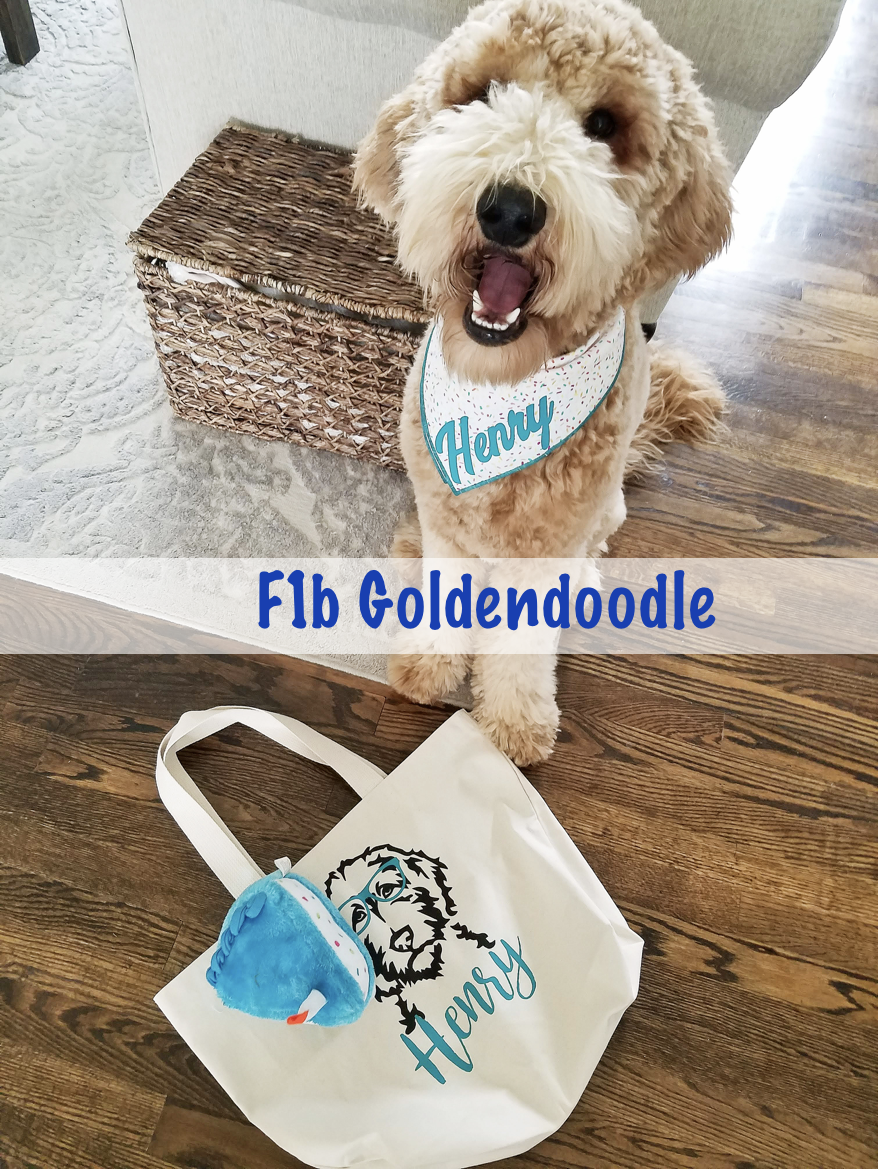 Henry requires a fair amount of exercise which includes at least 1 walk per day and play time in our yard. We also keep a variety of toys for him, including puzzles, for him to have in the house. He has a ton of thick hair, so I comb and brush him every week. The Safari brand brush and comb are my favorites for keeping his coat knot-free. If you want to keep your doodle’s coat on the longer side, it does require a fair amount of upkeep. We take him to the groomer every 6-8 weeks because his hair grows fast and it’s difficult to bathe him at home. I am really happy with our groomer! The first time I brought him in, I showed her pictures of goldendoodle cuts that I liked and a few that I did not. I always ask to keep Henry’s nose/snoot full and round, not trimmed and pointy.